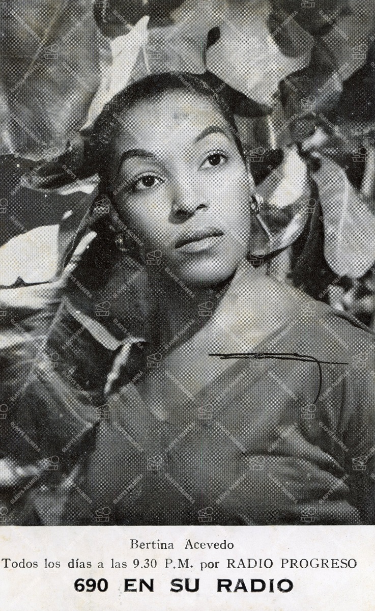Promoción de la actuación de Bertna Acevedo en Radio Progreso, todos los días a las 9.30 P.M.